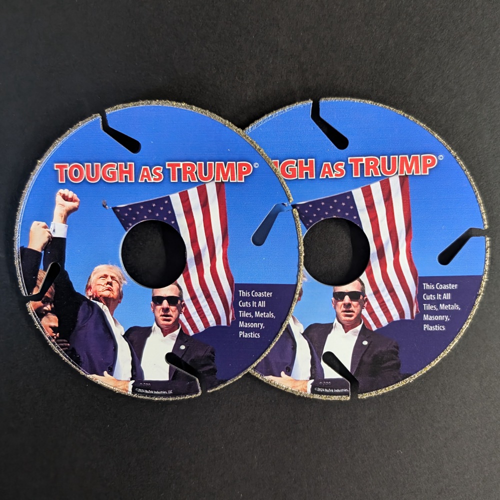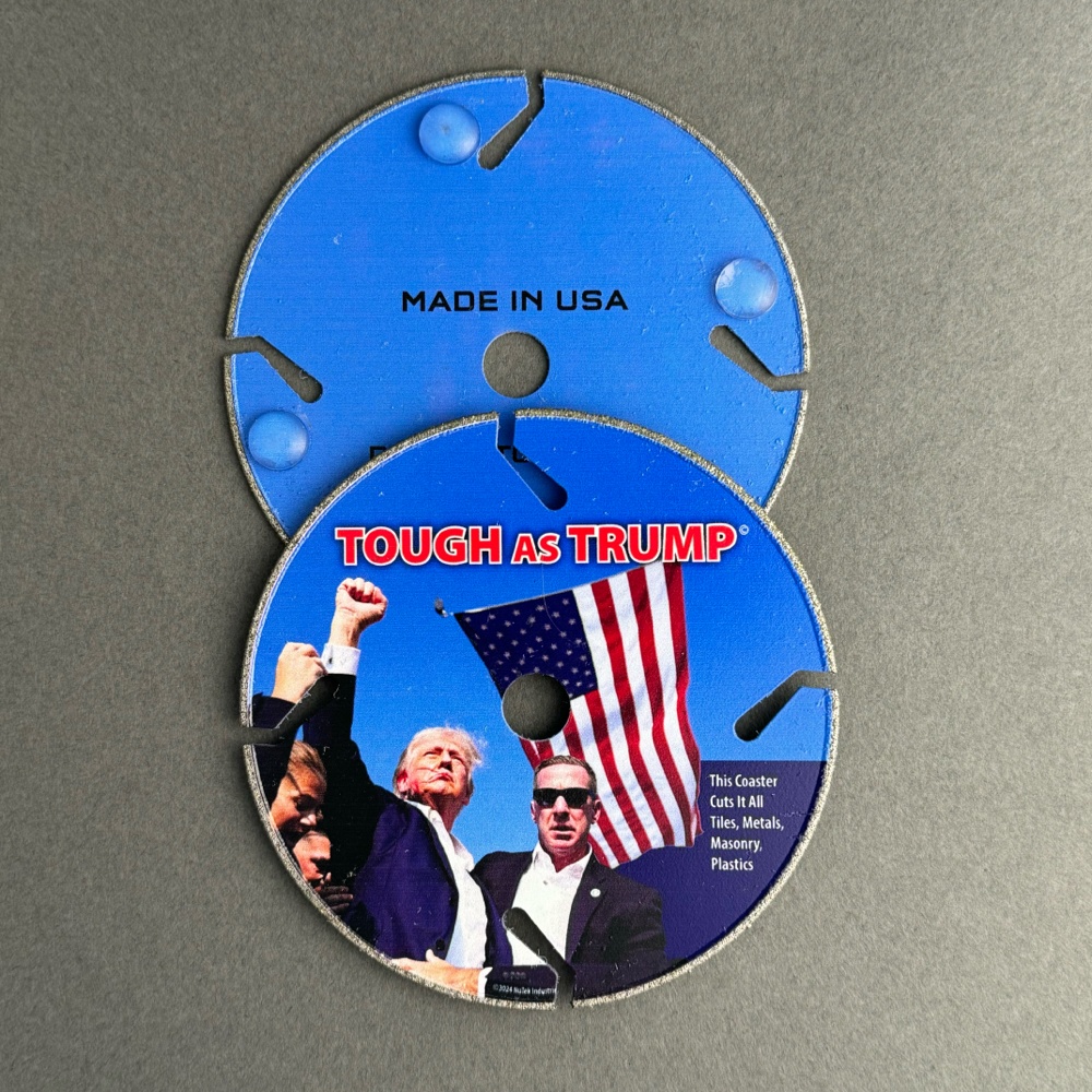 3.9″ Diamond Blade Drink Coaster – Tough as Trump (2-Pack)